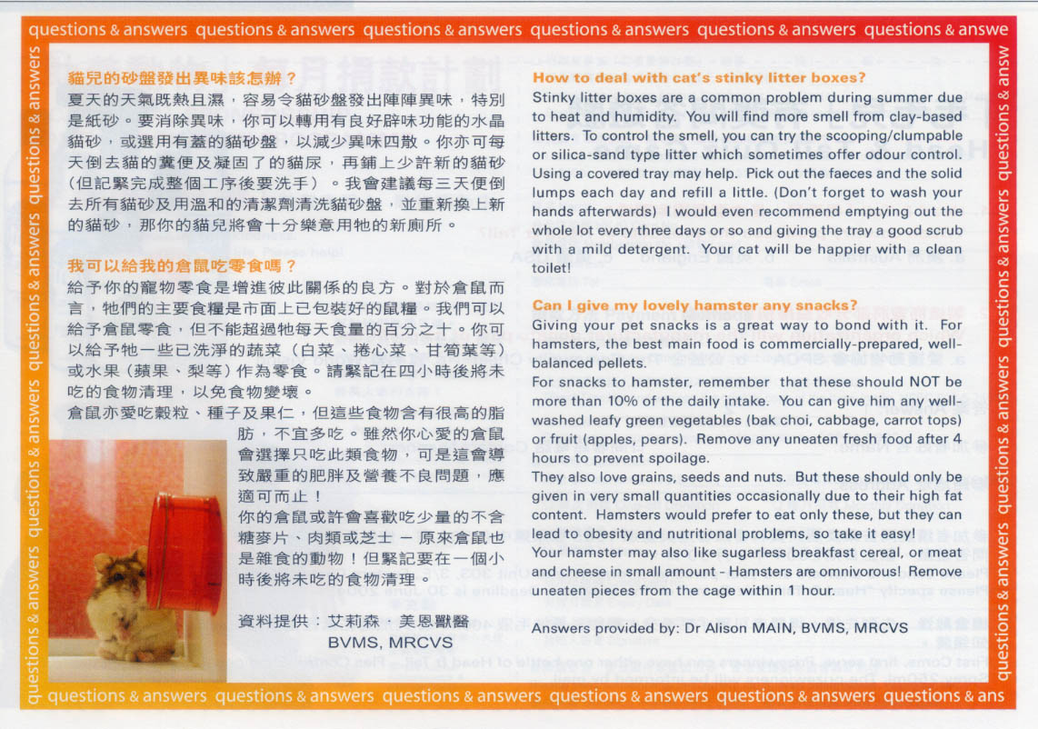 How to deal with cat¡¦s stinky litter boxes and Can I give my lovely hamster any snacks?